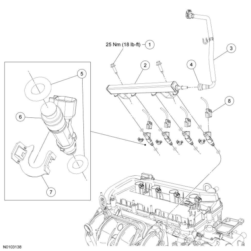 Fuel Rail and Fuel Injector - Exploded View