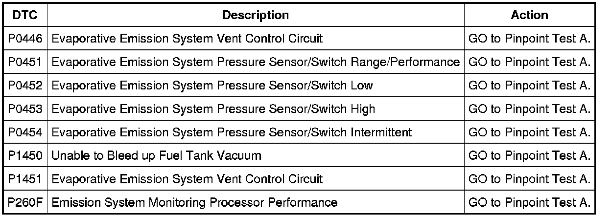 Evaporative Emission System DTC Chart
