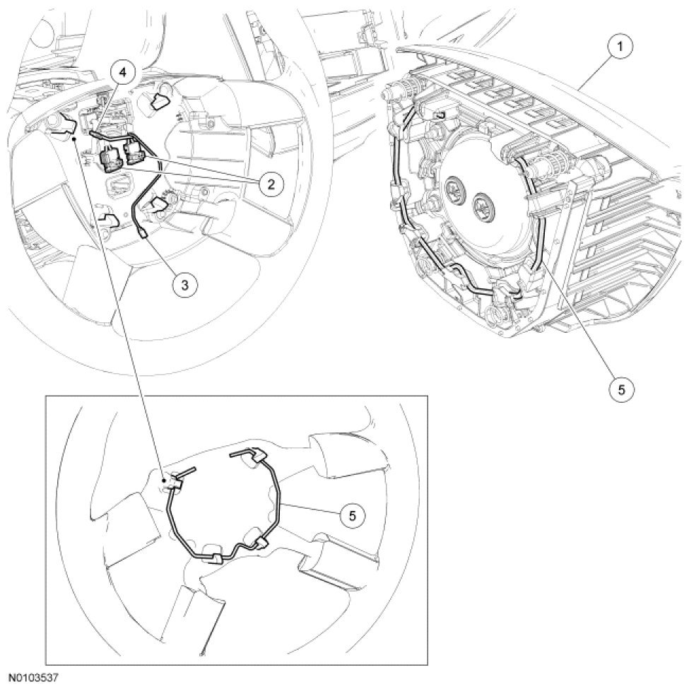NOTICE: Do not allow driver air bag module to hang from the wiring harness. Damage to the wiring harness and connectors may occur.