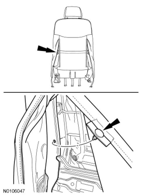 5. WARNING: If the seat side air bag cover has been damaged or separated from its mounting, or if the air bag material has been exposed, install a new seat side air bag module. Never try to repair the seat side air bag module. Failure to follow these instructions may result in the seat side air bag deploying incorrectly, which increases the risk of serious personal injury or death in a crash.