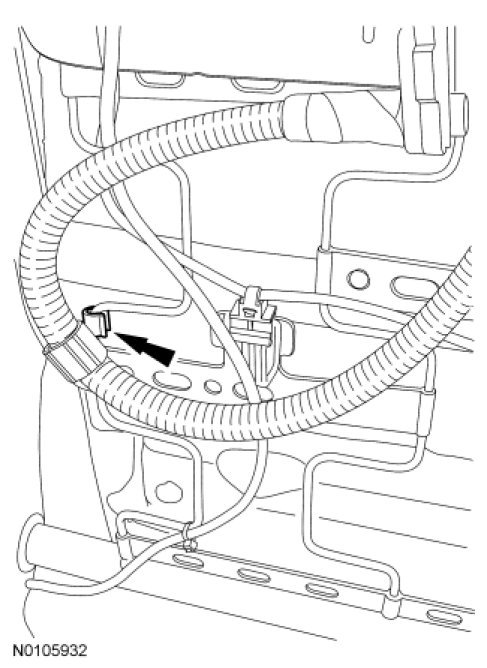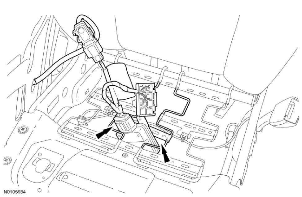 - Install the wire harness and retainers to the seat track.