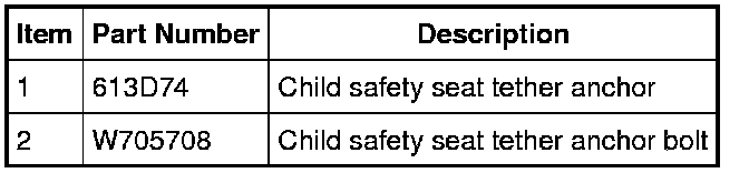 WARNING: Always tighten the child safety seat tether anchor/bolt to specification. Failure to follow this instruction may result in the child's safety seat being incorrectly secured, which increases the risk of serious personal injury or death to the child in a sudden stop or crash.