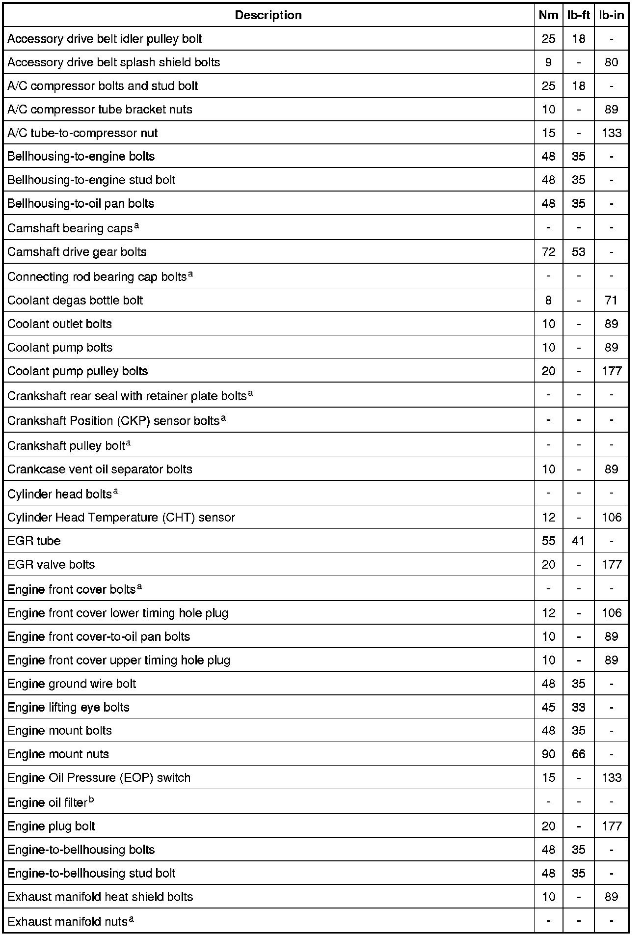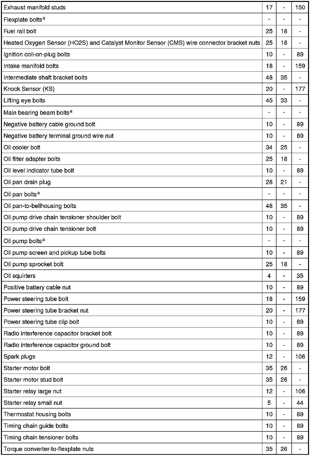 Torque Specifications