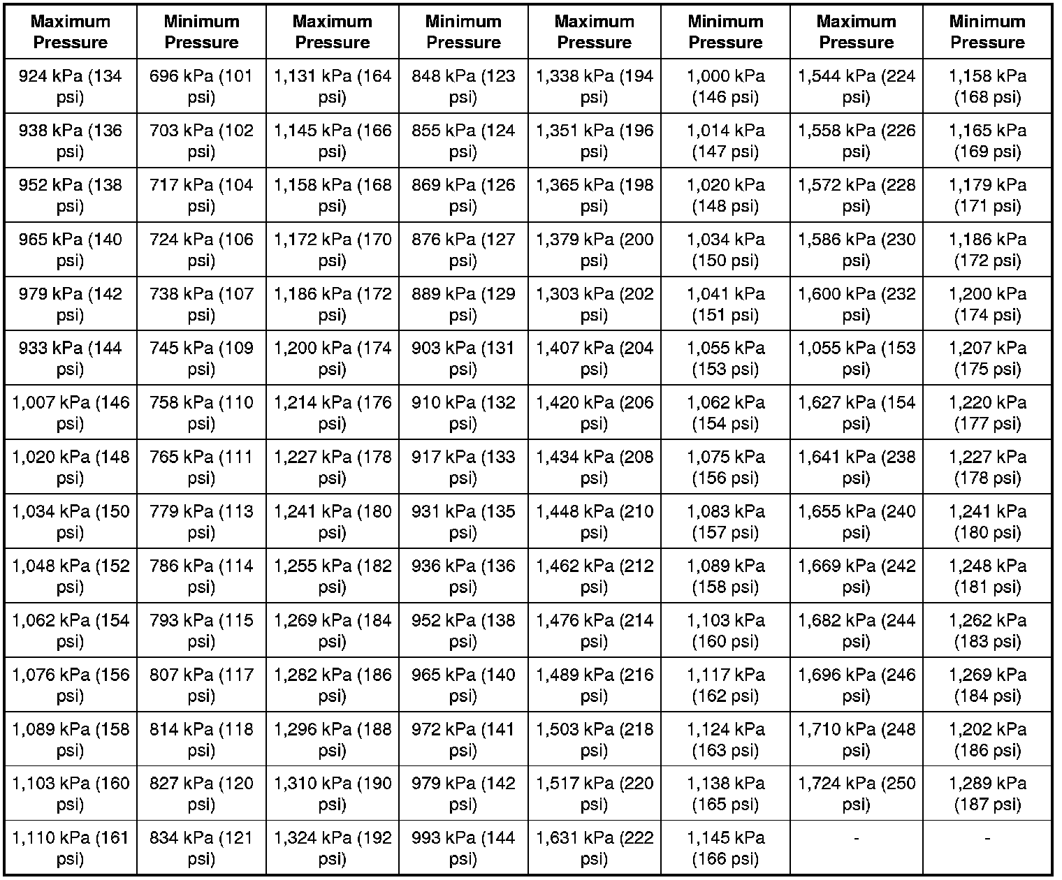 Compression Pressure Limit Chart