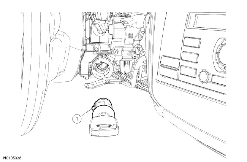 NOTE: For non-functional ignition lock cylinders, the steering column lock module has to be replaced. For additional information, refer to Steering Column.