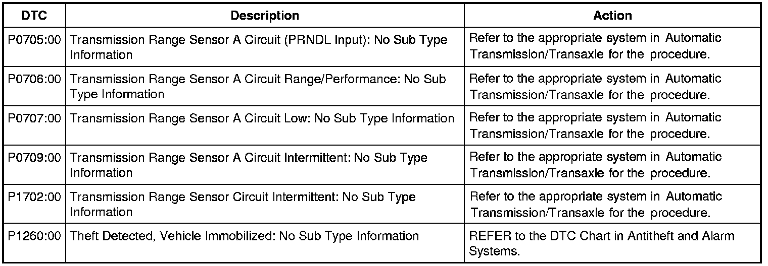 PCM DTC Chart