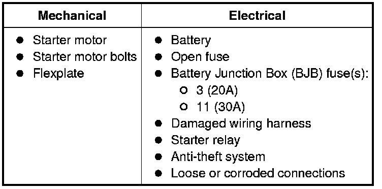 NOTE: The anti-theft system must be functioning correctly before a logical starting system diagnosis can be carried out. Address anti-theft system concerns before continuing. Refer to Antitheft and Alarm Systems.