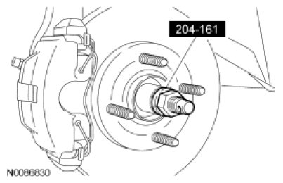 11. NOTICE: Do not tighten the wheel hub nut with the vehicle on the ground. The nut must be tightened to specification before the vehicle is lowered onto the wheels. Wheel bearing damage will occur if the wheel bearing is loaded with the weight of the vehicle applied.