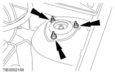9. Tighten the 3 upper strut mount nuts to 25 Nm (18 lb-ft).