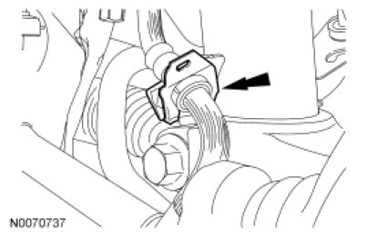 11. NOTICE: Do not use a prying device or separator fork between the ball joint and the wheel knuckle. Damage to the ball joint or ball joint seal may result.