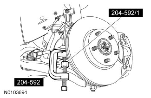 9. Using the Ball Joint Separator and Adapter, disconnect the tie-rod end from the wheel knuckle.