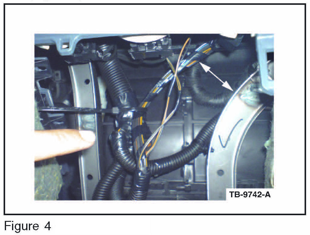 9. Tighten tie strap and verify blower motor wiring has sufficient clearance from the IP bracket. (Figure 4)