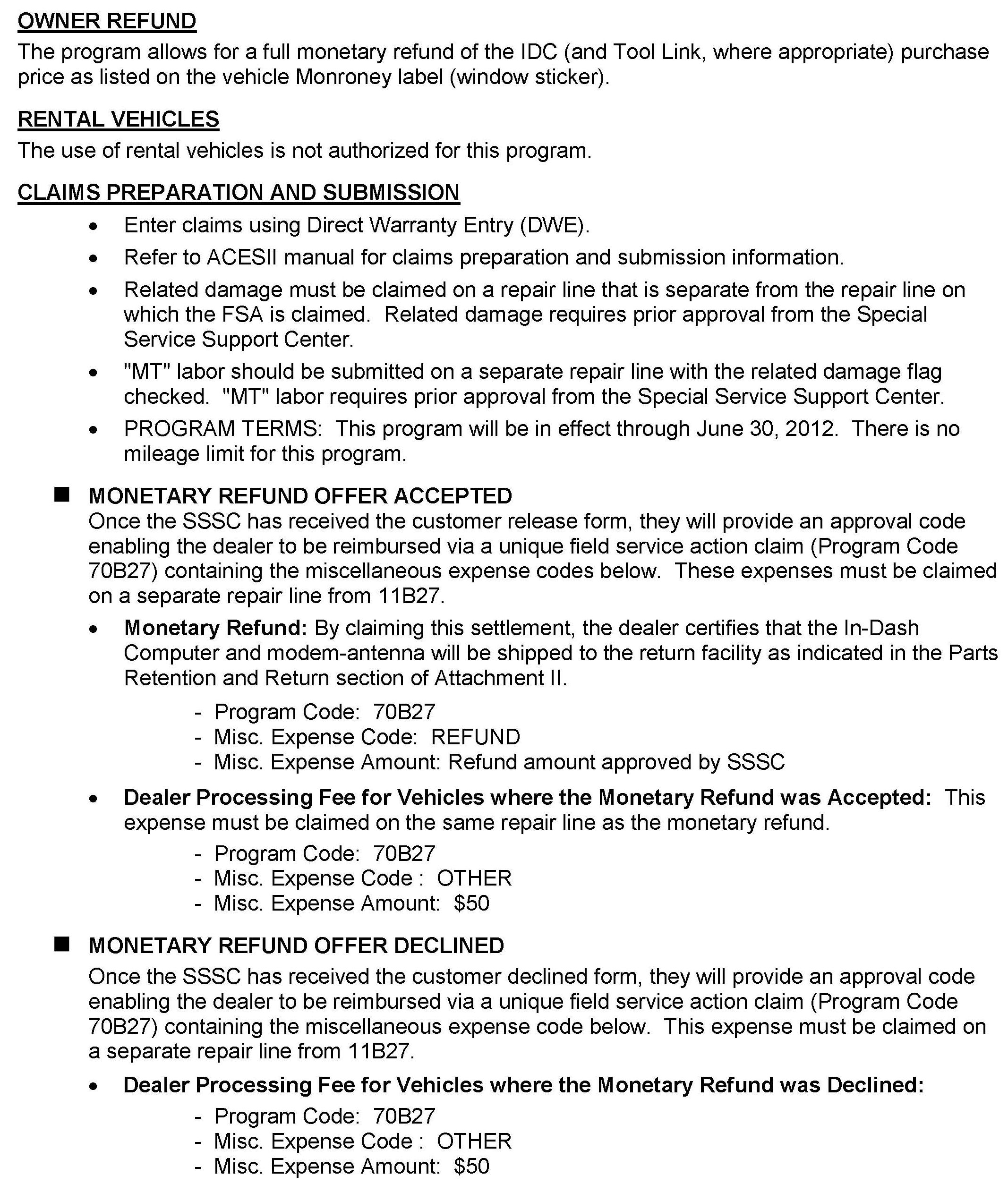 Campaign - In Dash Computer (IDC) Refund
