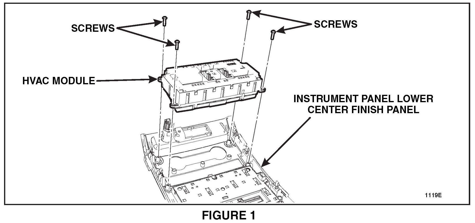 4. Install the HVAC module to the new instrument panel lower center finish panel. See Figure 1.