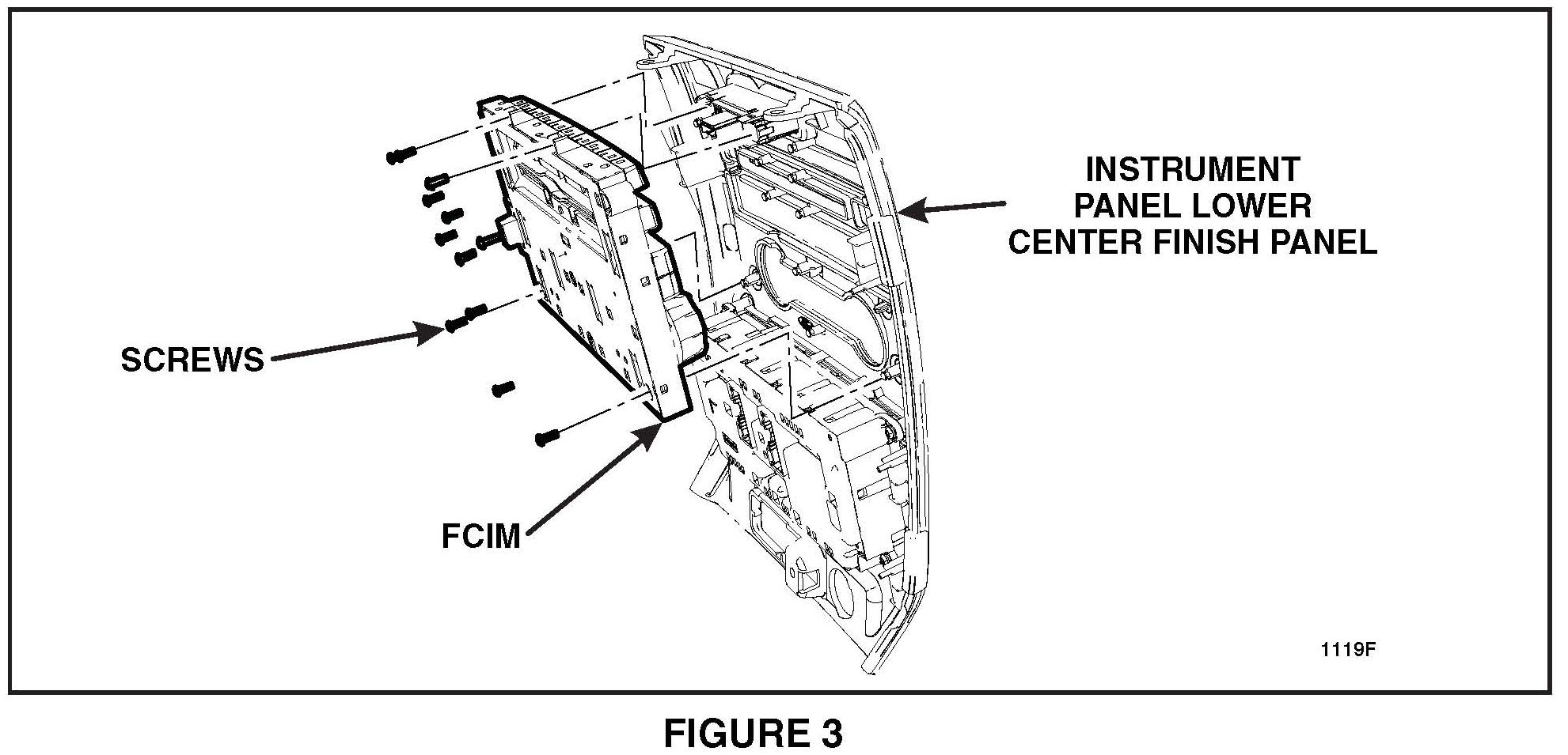 7. Install the new Front Controls Interface Module (FCIM) to the new instrument panel lower center finish panel using the 12 new screws. See Figure 3.