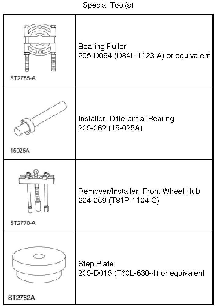 Using the Front Wheel Hub Remover/Installer, Bearing Puller and Step Plate, remove the differential case bearings.
