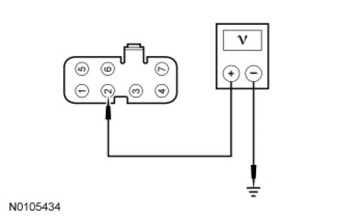 - Measure the voltage between LH window control switch C3293A-2, circuit 15-AJ7 (GN/BU), harness side and ground.