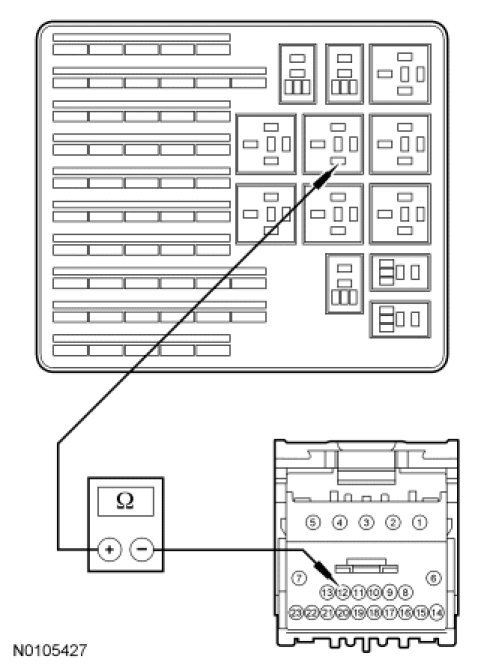 - Measure the voltage between rear window rear window defrost relay socket pin 85, circuit 15-DA1G (GN/YE), and ground; and between rear window defrost relay socket pin 30, circuit 30-DA1A (RD), and ground.