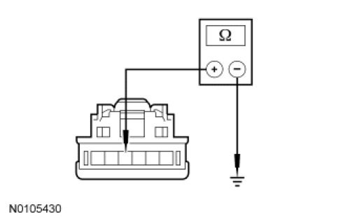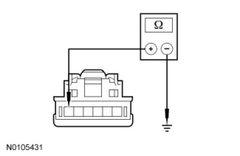 - Measure the resistance between rear window defrost switch C241-4, circuit 91S-HB31 (BK/OG), harness side and ground.