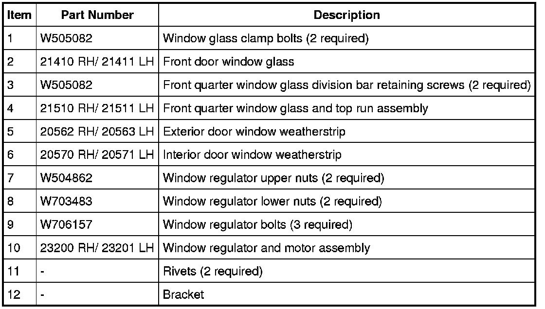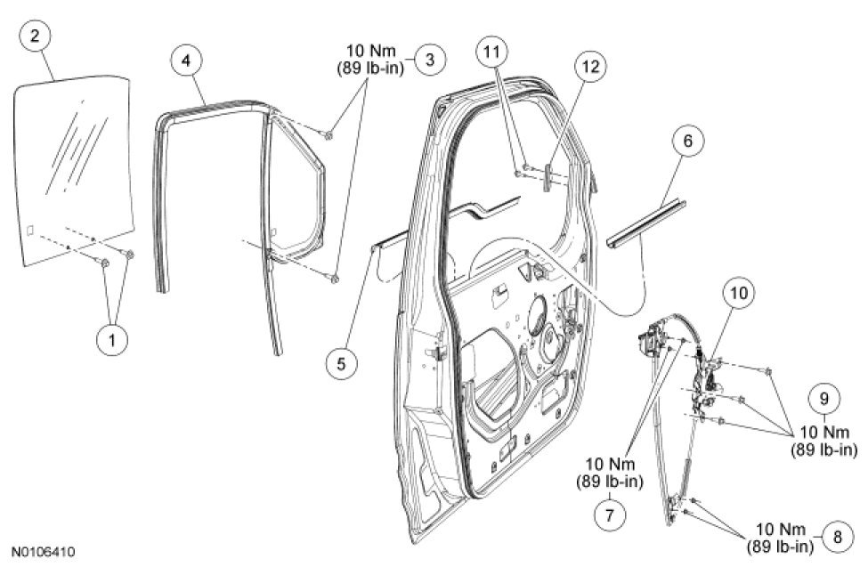 Glass, Frames and Mechanisms - Exploded View, Front Door