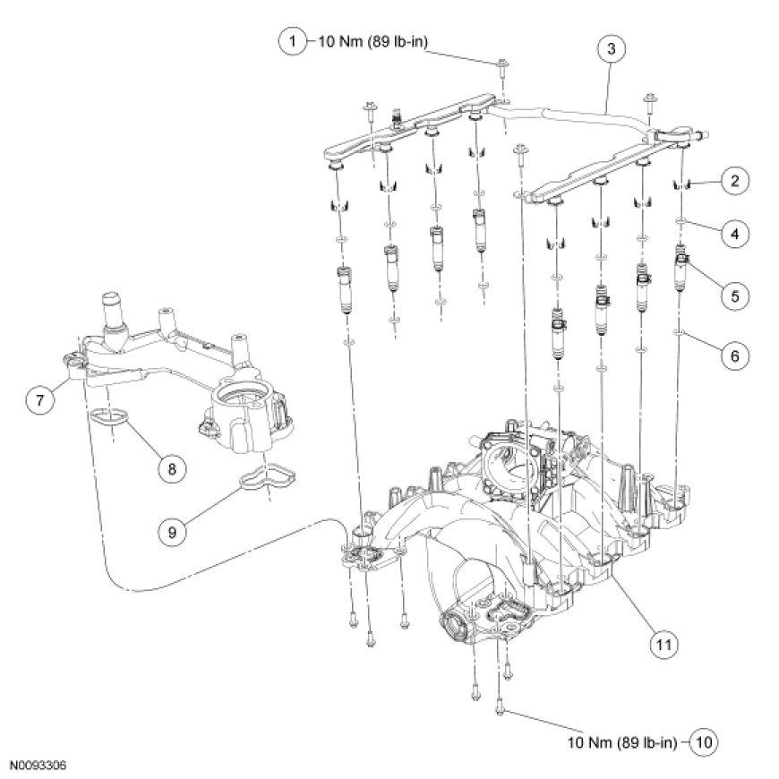 1. NOTICE: If the engine is repaired or replaced because of upper engine failure, typically including valve or piston damage, check the intake manifold for metal debris. If metal debris is found, install a new intake manifold. Failure to follow these instructions can result in engine damage.