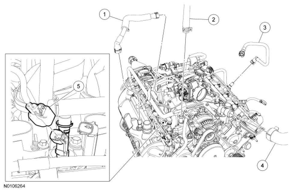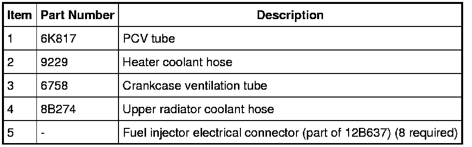 Crankcase Ventilation Tube, Heater Coolant Hose and Upper Radiator Coolant Hose