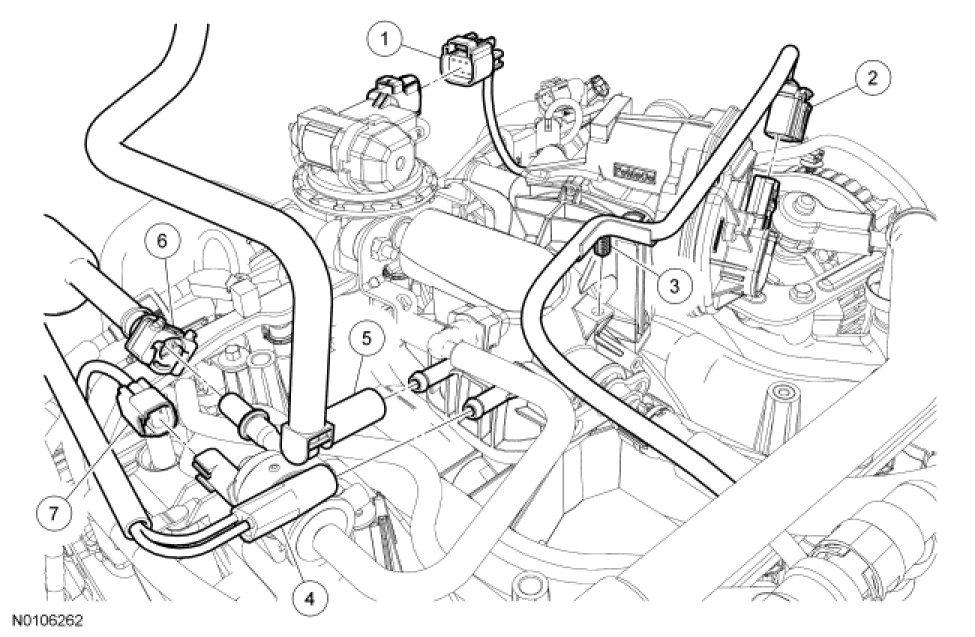 6. Disconnect the quick connect couplings and remove the PCV tube. For additional information, refer to Fuel System - General Information Service and Repair.