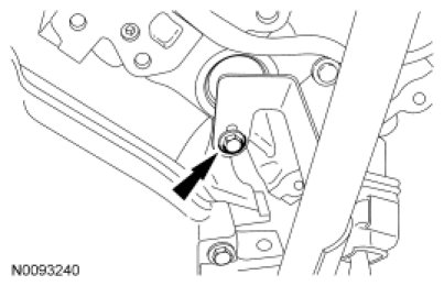 7. Remove the front transmission fluid filler tube support bracket bolt.