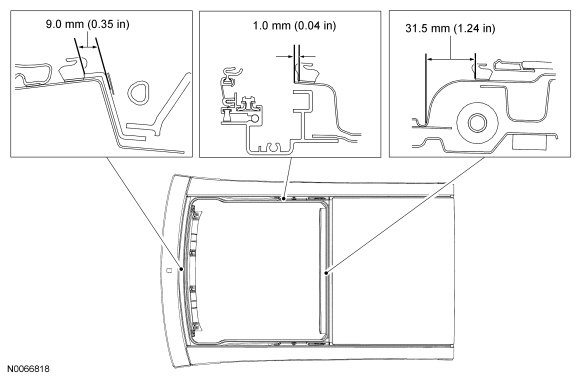 2. NOTE: When the roof opening sliding glass panel is in the VENT position, the roof opening panel primary seal should contact the leading edge of the sliding glass.