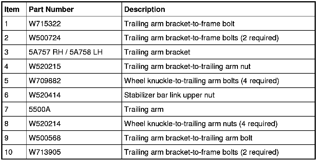 5. Remove and discard the trailing arm bracket-to-trailing arm bolt and nut and separate the trailing arm from the trailing arm bracket.