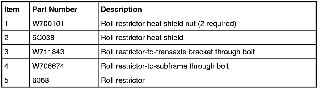 4. Remove the roll restrictor-to-transaxle bracket through bolt and the roll restrictor-to-subframe through bolt and remove the roll restrictor.