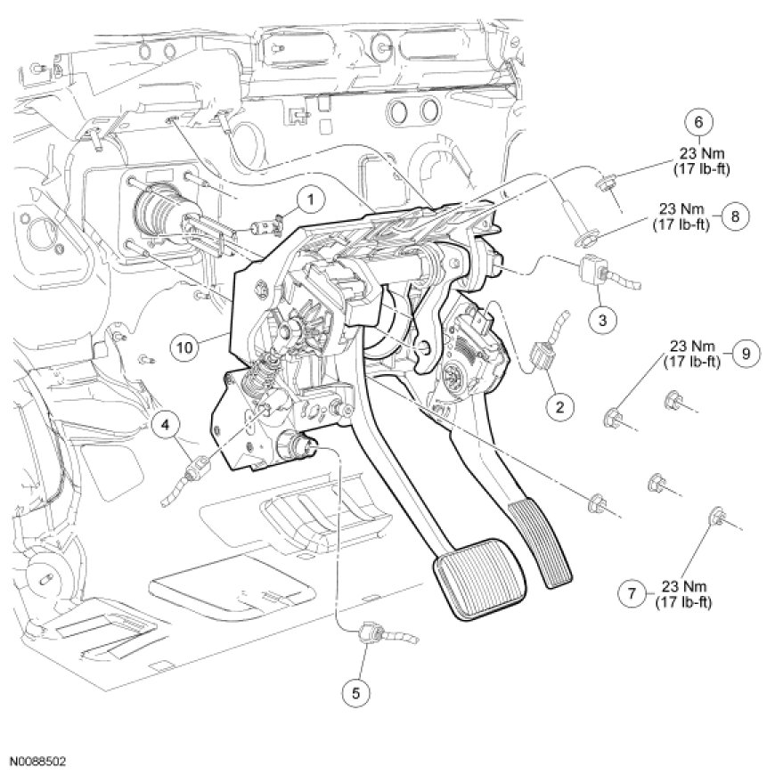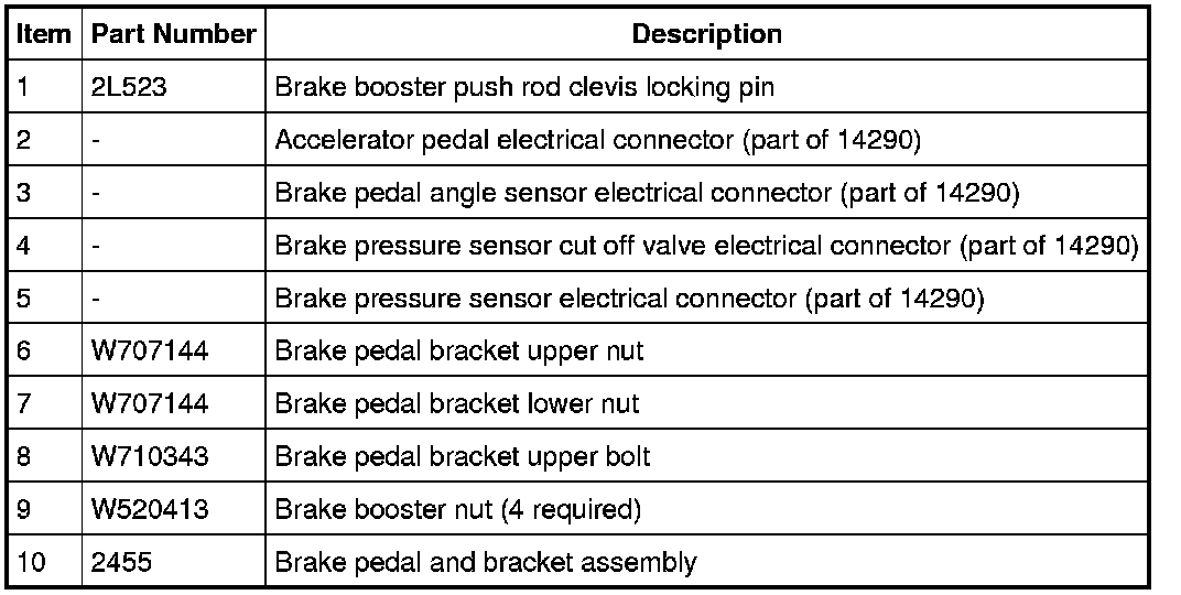 8. Remove the brake pedal and bracket assembly.