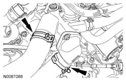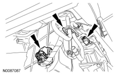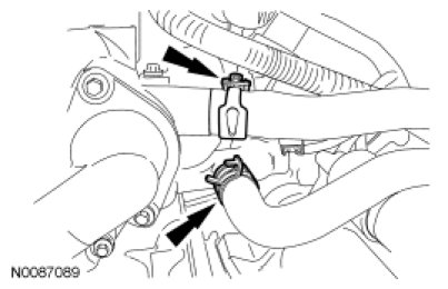 63. Install the Air Cleaner (ACL) outlet pipe and ACL. For additional information, refer to Intake Air Distribution and Filtering - 3.0L (4V) Air Cleaner Outlet Pipe and Air Cleaner.