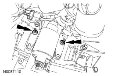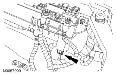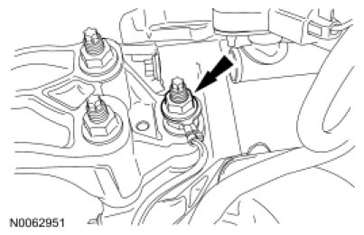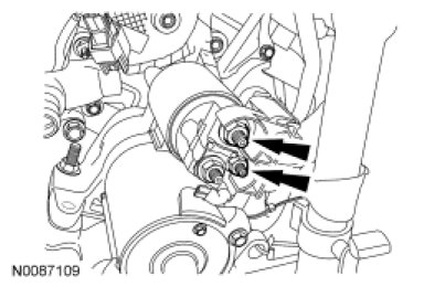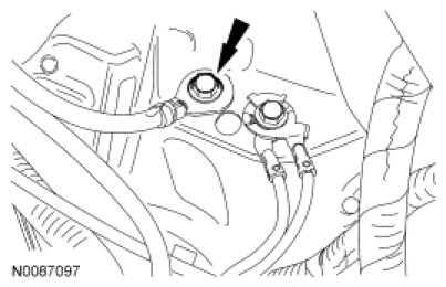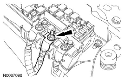 - Tighten the large starter motor solenoid battery cable nut to 12 Nm (106 lb-in).