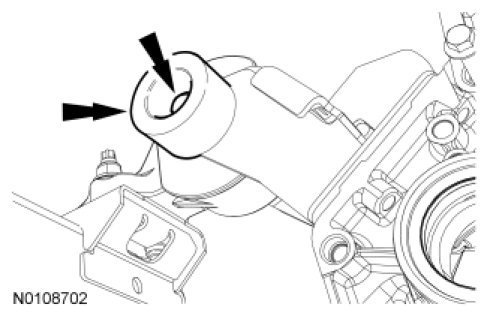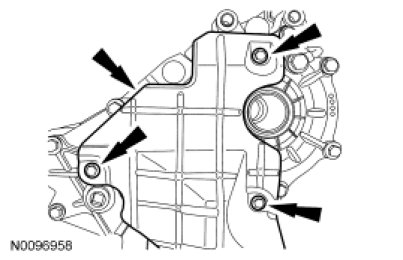 Align the index-marks made during removal and install 6 new front driveshaft-to-PTU bolts and washers.