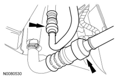 40. Connect the fuel supply tube quick connect coupling to the fuel rail. For additional information, refer to Fuel System - General Information Quick Connect Coupling.