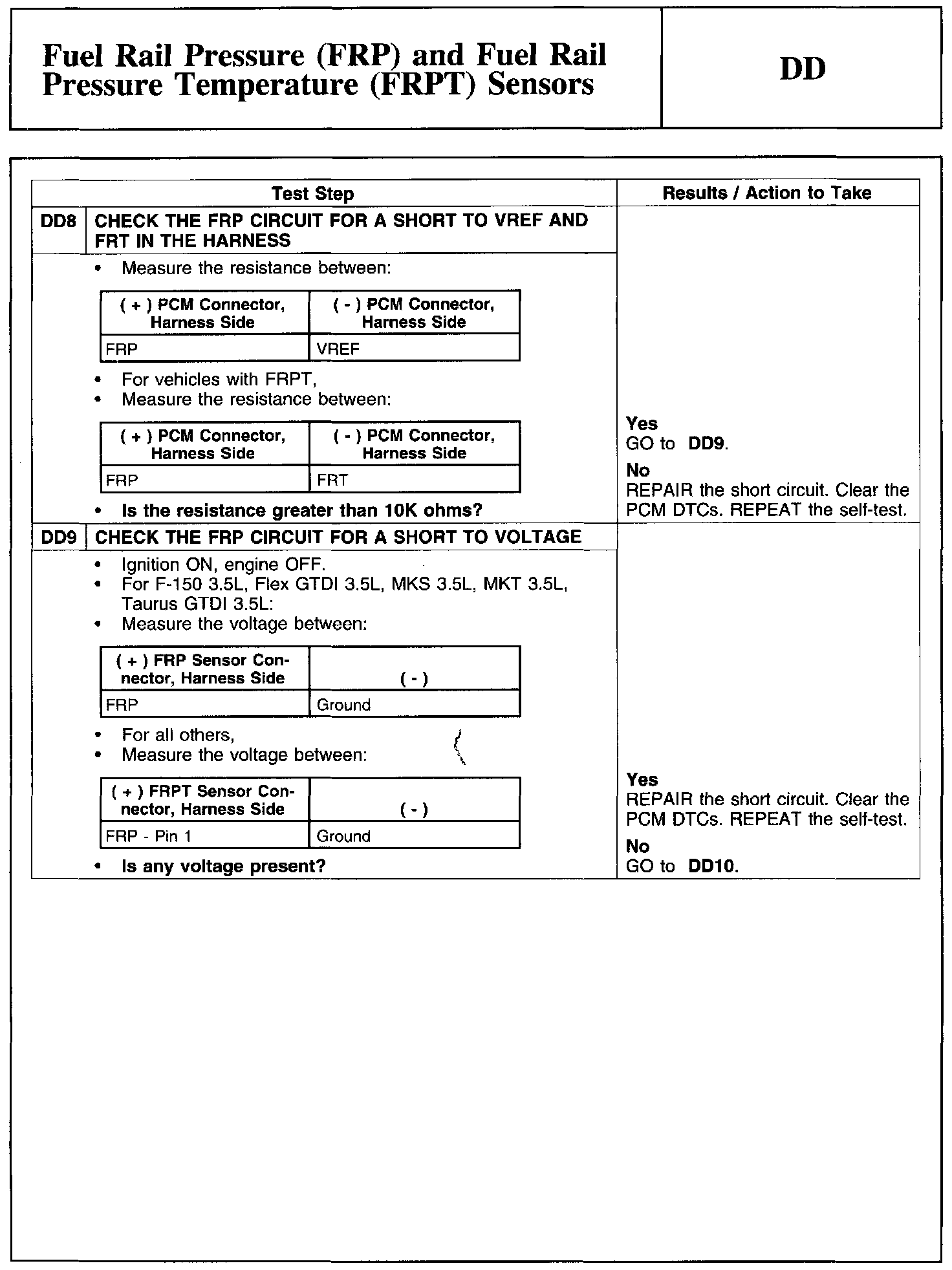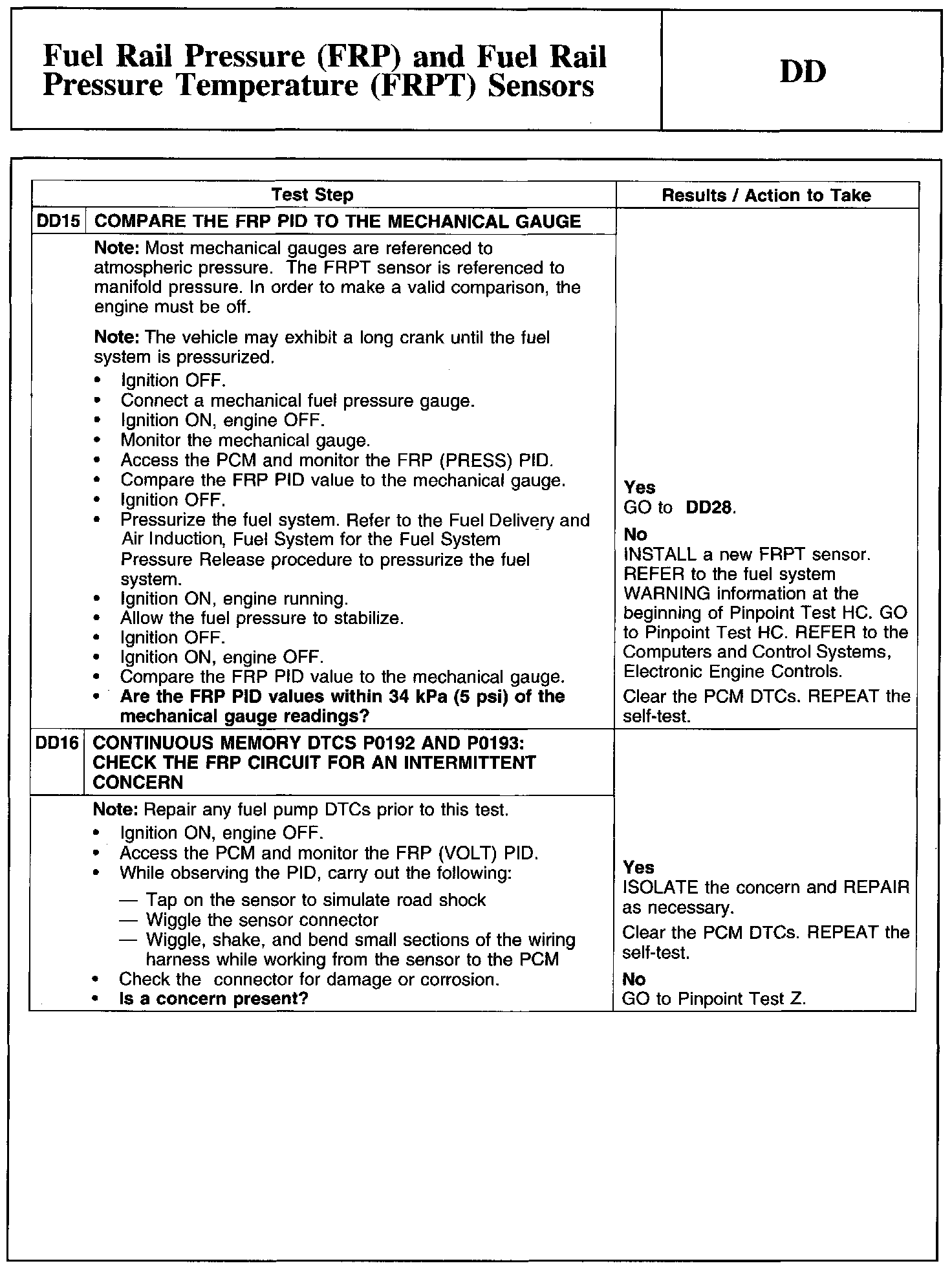 PINPOINT TEST DD: FUEL RAIL PRESSURE (FRP) AND FUEL RAIL PRESSURE TEMPERATURE (FRPT) SENSORSWarning, Note And Tables And Graphs: