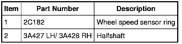 1. Install the new ABS wheel speed sensor ring and the tools on the halfshaft as shown in the previous illustration.