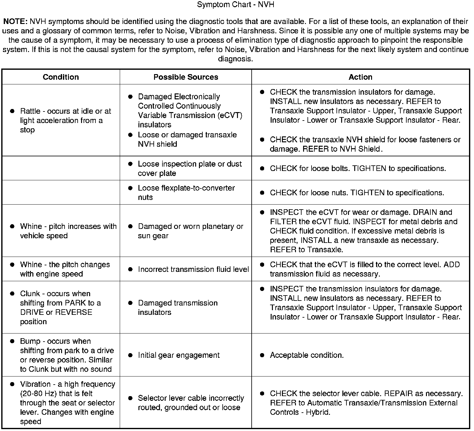 Symptom Chart - NVH