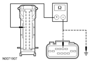- Measure the resistance between SJB C2280F-8, circuit CRW01 (WH), harness side and windshield wiper motor C125-2, circuit CRW01 (WH); and between SJB C2280F-8, circuit CRW01 (WH), harness side and ground.