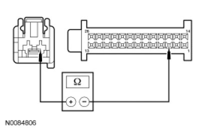 - Measure the resistance between HVAC module - DATC C228A-3, circuit VH414 (GN/BU), harness side and ground.