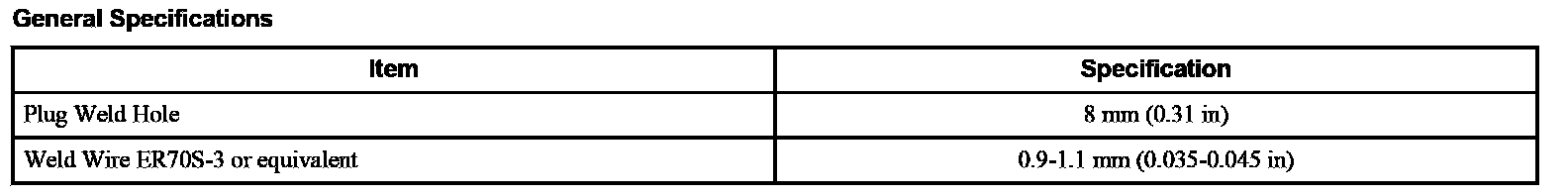 - Factory spot welds may be substituted with either STRW or MIG plug welds. Spot/plug welds should equal factory welds in both location and quantity. Do not place a new spot weld directly over an original weld location. Plug weld hole should equal 8 mm (0.31 in) diameter.