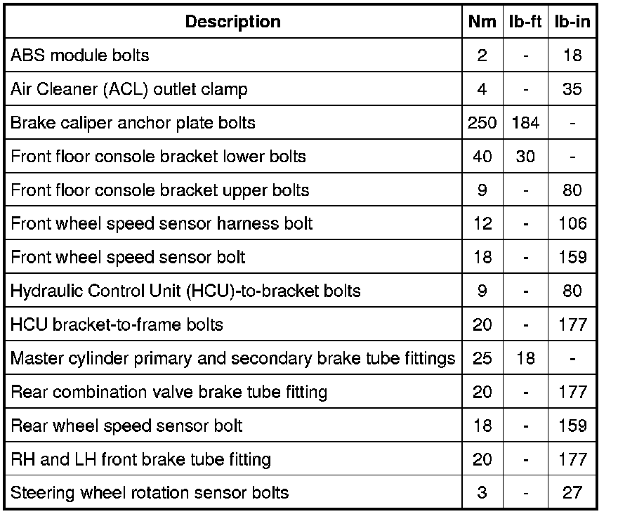 Torque Specifications