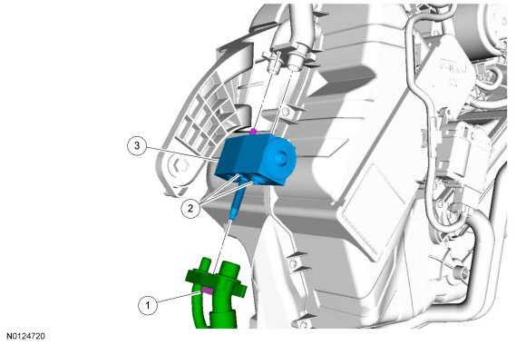2. NOTICE: The auxiliary line floorpan bracket screws are loosened only to allow the auxiliary evaporator tubes to be positioned away from the auxiliary TXV (Thermostatic Expansion Valve). Do not fully disassemble the floorpan bracket or separate the floorpan gasket from the bracket. If the floorpan gasket is separated from the bracket, or if it is damaged, a new gasket must be installed to avoid noise and water leak concerns.