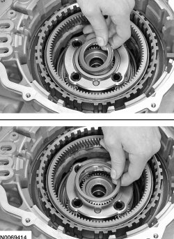 23. Clean and inspect the rear planetary sun gear and shell assembly for damage or wear and install new, as necessary.