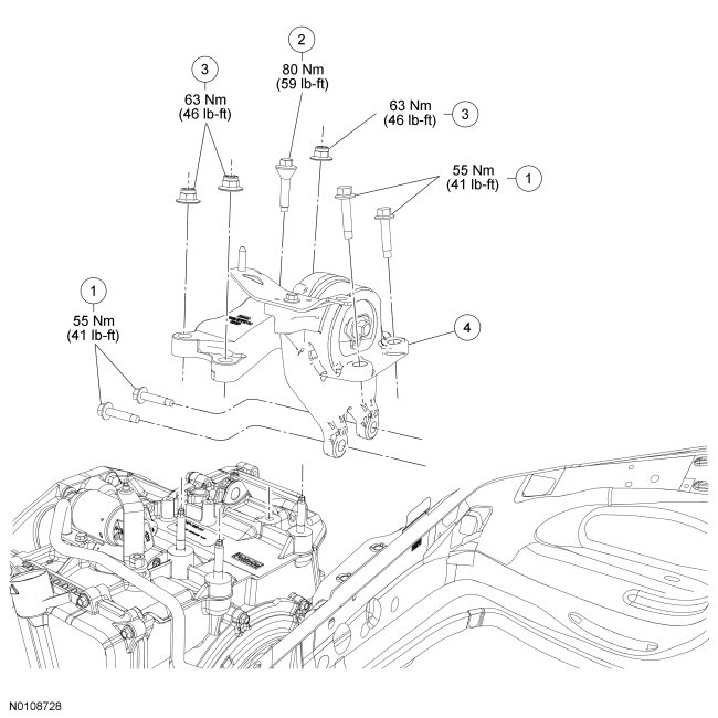 - Tighten to 55 Nm (41 lb-ft).