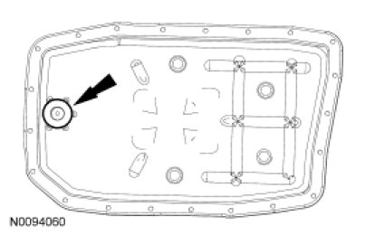2. Remove the transmission fluid pan and allow the transmission fluid to drain.