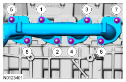 - Tighten the bolts in the sequence shown to 10 Nm (89 lb-in).