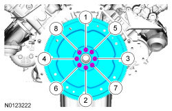 Install the engine separator plate, the flexplate and 8 new bolts.
