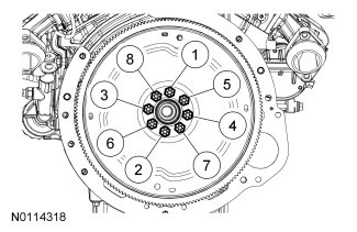 Install the flexplate and the 8 bolts and tighten in sequence shown.